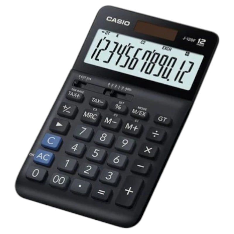 Máy tính CASIO J-120F là một máy tính có màn hình hiển thị LCD rõ nét và bàn phím dễ dàng sử dụng, giúp bạn thực hiện các phép tính một cách nhanh chóng. - CASIO J-120F cung cấp tính năng cơ bản như cộng, trừ, nhân, chia và tính phần trăm. Với độ chính xác cao và khả năng sử dụng lâu dài. - Tự động tính toán giá cộng thuế, giá trừ thuế, khoản chiết khấu, giá bán, số tiền thuế, số tiền giảm giá và số tiền lãi. - Chế độ sử dụng năng lượng mặt trời được bật khi đủ sáng, chế độ pin được bật khi không đủ sáng - Các thao tác phím được lưu trữ trong bộ nhớ đệm, nhờ vậy sẽ không bị mất dữ liệu ngay cả khi nhập với tốc độ cao - Tính năng bộ chọn giá trị làm tròn, bộ chọn số thập phân và Phím ' % ' giúp quá trình tính toán của bạn trở nên chính xác và cực kì nhanh chóng.