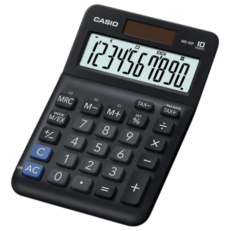 Máy tính Casio MS-10F là dòng máy tính để bàn mini có thiết kế nhỏ gọn, hiện đại với bề mặt kim loại sang trọng và bền bỉ. Máy trang bị màn hình lớn hiển thị 10 chữ số sắc nét, giúp việc quan sát dữ liệu dễ dàng và chính xác trong quá trình làm việc. Sản phẩm tích hợp đầy đủ các tính năng tính toán chuyên dụng như tính Thuế (TAX), tính phần trăm (%) lợi nhuận và các phím chức năng ghi nhớ tiện lợi. Nhờ hệ thống năng lượng kép (pin và năng lượng mặt trời), máy luôn hoạt động ổn định trong mọi điều kiện ánh sáng, là lựa chọn tối ưu cho những không gian làm việc nhỏ hẹp hoặc nhu cầu tính toán di động..