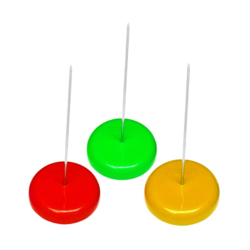 Thân ghim sắc bén: Phần thân là một thanh kim loại thẳng, cứng cáp, đầu trên được mài nhọn để dễ dàng xuyên qua nhiều lớp giấy cùng lúc mà không làm rách toạc lỗ. Đế đứng vững chãi: Phần đế được thiết kế có độ rộng và trọng lượng đủ lớn để cây ghim không bị đổ khi bạn ghim nhiều giấy tờ về một phía. Mặt dưới đế thường phẳng, giúp đặt cố định trên mặt bàn kính, gỗ hoặc nhựa. Lớp mạ cao cấp: Bề mặt kim loại được mạ một lớp chống gỉ sét (thường là Chrome bạc), giúp sản phẩm luôn sáng bóng theo thời gian và không làm bẩn giấy tờ khi tiếp xúc lâu ngày. An toàn khi sử dụng: Mặc dù đầu kim nhọn, nhưng độ dài và vị trí đứng của nó giúp người dùng dễ dàng kiểm soát thao tác ghim, tránh gây trầy xước tay so với việc để giấy tờ bừa bãi..