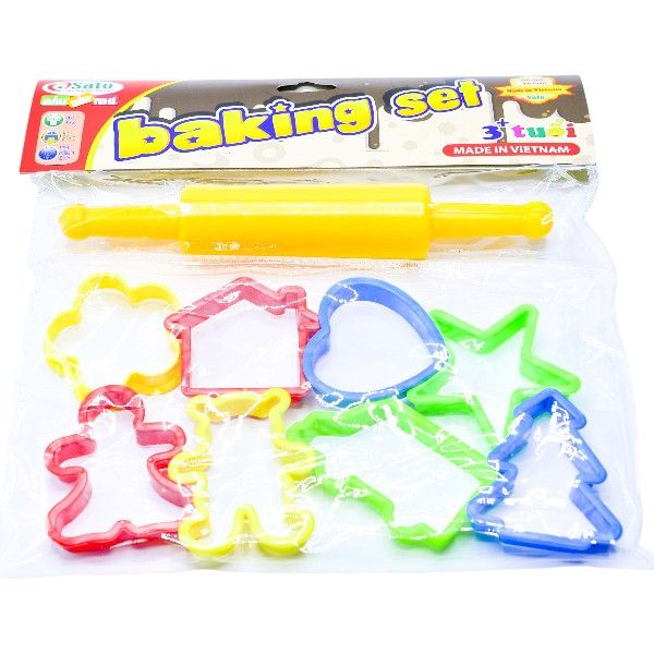Đầu Bếp Nhí - Baking Set Baking Set là sản phẩm hướng nghiệp dành riêng cho các bé gái. Với cây lăn và bộ 8 khuôn đầy sắc màu. Chắc chắn các bé sẽ có những trải nghiệm thú vị khi làm bếp cùng với mẹ.