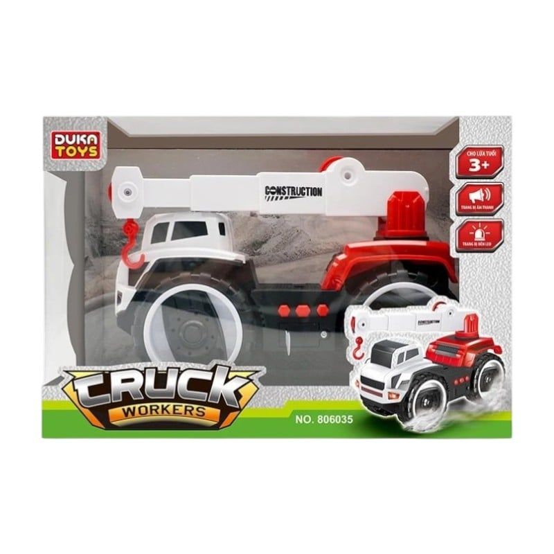 Xe Cần Cẩu - Kỹ Thuật Công Trình Có Nhạc, Đèn - Duka SF 806035 Xe kĩ thuật công trình loại xe cần cẩu sẽ giúp bé tìm hiểu về cấu tạo cũng như cách thức hoạt động của xe. Ngoài ra với nhạc và đèn nhấp nháy như mô hình xe thật, trẻ sẽ đóng vai thành một kĩ sư điều khiển xe thi công trên công trình. Món đồ chơi không chỉ đem lại hứng thú cho trẻ mà còn giúp trẻ tìm hiểu về phương tiện và công việc trong lĩnh vực thi công xây dựng. Sản phẩm đạt tiêu chuẩn: - Châu Âu: EN 71 - Mỹ: ASTM - Tiêu chuẩn quốc gia về đồ chơi trẻ em QCVN 3:2009/BKHCN - Thương hiệu Duka Toys - Xuất xứ thương hiệu Việt Nam - Sản xuất tại Hồng Kông Cảnh báo an toàn: - Sản phẩm dùng cho trẻ em, độ tuổi trên 3 tuổi - Chất liệu nhựa cao cấp ABS, an toàn cho trẻ - Màu sắc và sản phẩm có thể thay đổi.