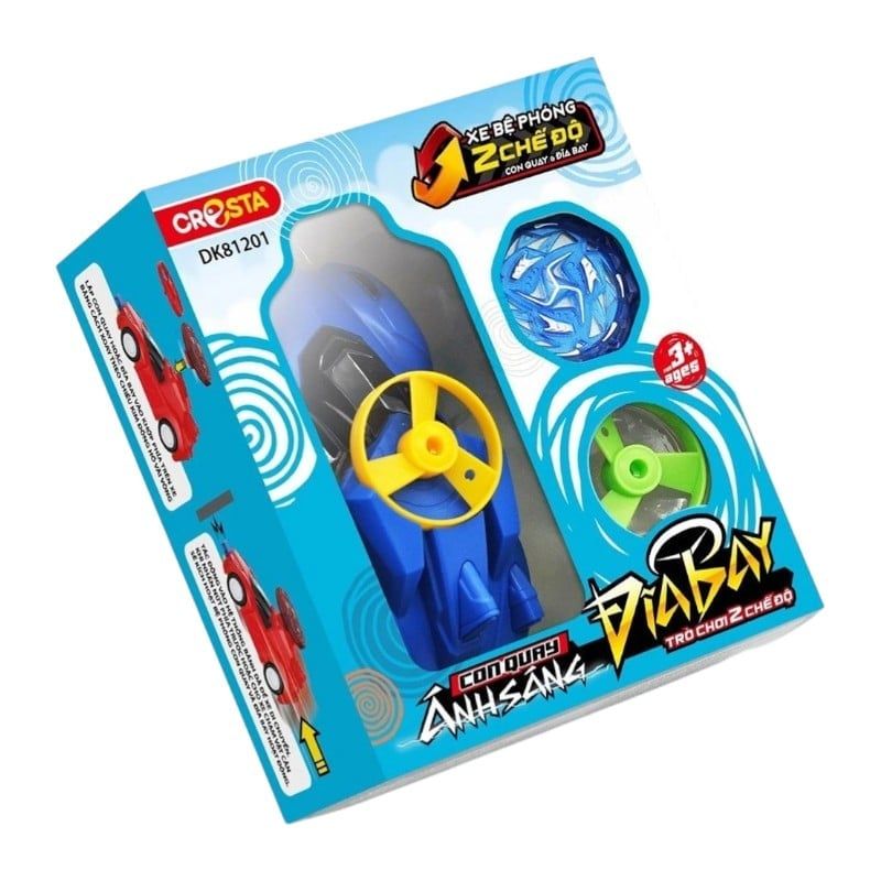 Đồ chơi con quay là sản phẩm đồ chơi cho bé được mô phỏng theo nội dung của các bộ phim hoạt hình hấp dẫn đang trình chiếu, nên các bé đều có tâm lý mong muốn sở hữu một món đồ chơi đầy ma lực này để giải trí sau những giờ học tập căng thẳng. Ngoài con quay nhiều màu sắc, sản phẩm còn kết hợp thêm các đĩa bay tạo thêm phần hấp dẫn khi chơi. Với kết cấu chắc chắn được thiết kế bằng nhựa ABS và kim loại đúc giúp con quay chịu lực va đập tốt, khi con quay chuyển động có đèn led phát sáng tạo sự hấp dẫn, bắt mắt.Khuôn viền được thiết kế không góc cạnh đảm bảo độ an toàn cho bé khi chơi. Phụ kiện chính kèm theo là chiếc ô tô mô hình được thiết kế bằng nhựa ABS nguyên khối, chịu được lực va chạm mạnh và ở mũi xe đều có các nút bật khi có lực tác động giúp con quay và đĩa bay vút lên cao. Trên mỗi bìa hộp đều có hướng dẫn sử dụng, cách chơi được mô tả chi tiết bằng tiếng Việt. Trò chơi mang lại các lợi ích cho bé như: - Tăng cường thị giác linh hoạt - Bồi dưỡng khả năng tập trung - Kích thích trí tưởng tượng - Rèn luyện kỹ năng vận động.