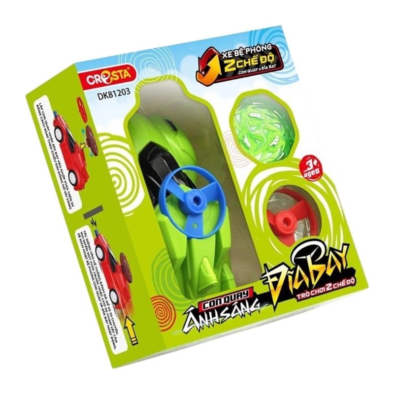 Đồ chơi con quay là sản phẩm đồ chơi cho bé được mô phỏng theo nội dung của các bộ phim hoạt hình hấp dẫn đang trình chiếu, nên các bé đều có tâm lý mong muốn sở hữu một món đồ chơi đầy ma lực này để giải trí sau những giờ học tập căng thẳng. Ngoài con quay nhiều màu sắc, sản phẩm còn kết hợp thêm các đĩa bay tạo thêm phần hấp dẫn khi chơi. Với kết cấu chắc chắn được thiết kế bằng nhựa ABS và kim loại đúc giúp con quay chịu lực va đập tốt, khi con quay chuyển động có đèn led phát sáng tạo sự hấp dẫn, bắt mắt.Khuôn viền được thiết kế không góc cạnh đảm bảo độ an toàn cho bé khi chơi. Phụ kiện chính kèm theo là chiếc ô tô mô hình được thiết kế bằng nhựa ABS nguyên khối, chịu được lực va chạm mạnh và ở mũi xe đều có các nút bật khi có lực tác động giúp con quay và đĩa bay vút lên cao. Trên mỗi bìa hộp đều có hướng dẫn sử dụng, cách chơi được mô tả chi tiết bằng tiếng Việt. Trò chơi mang lại các lợi ích cho bé như: - Tăng cường thị giác linh hoạt - Bồi dưỡng khả năng tập trung - Kích thích trí tưởng tượng - Rèn luyện kỹ năng vận động.