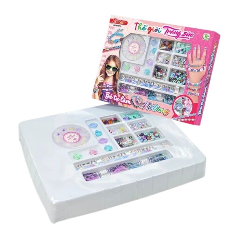 Bộ đồ chơi Bé tự làm nữ trang - thế giới trang sức được thiết kế các chi tiết mô phỏng các đồ vật trang sức đầy màu sắc cho bé như hạt cườm, bông tai, móng tay giúp bé hóa thân thành người thợ trang điểm và tự do sáng tạo các vật dụng trang điểm cho mình mang cá tính và phong cách riêng. - Bộ đồ chơi giúp bé rèn luyện các kỹ năng như: Phát triển tư duy thẩm mỹ, rèn kỹ năng đôi tay khéo léo, nhận biết màu sắc, kết nối cộng đồng và định hướng nghề nghiệp trong tương lai. - Với chất liệu nhựa ABS an toàn, bộ đồ chơi sẽ là món quà đáng giá mà các cha mẹ dành tặng cho con mình sau những giờ học tập căng thẳng..