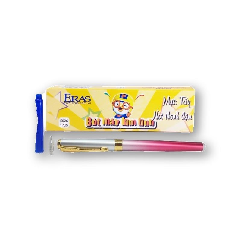 Eras E026 có đầu tầy được ngòi kim tinh mài nét thanh đậm định vị tay cầm sạch sẽ k dây mực thân bút sắc màu đa dạng tặng ngòi và ống mực tẩy dc có thể dùng mực thường ống loại 3.4mm ạ.