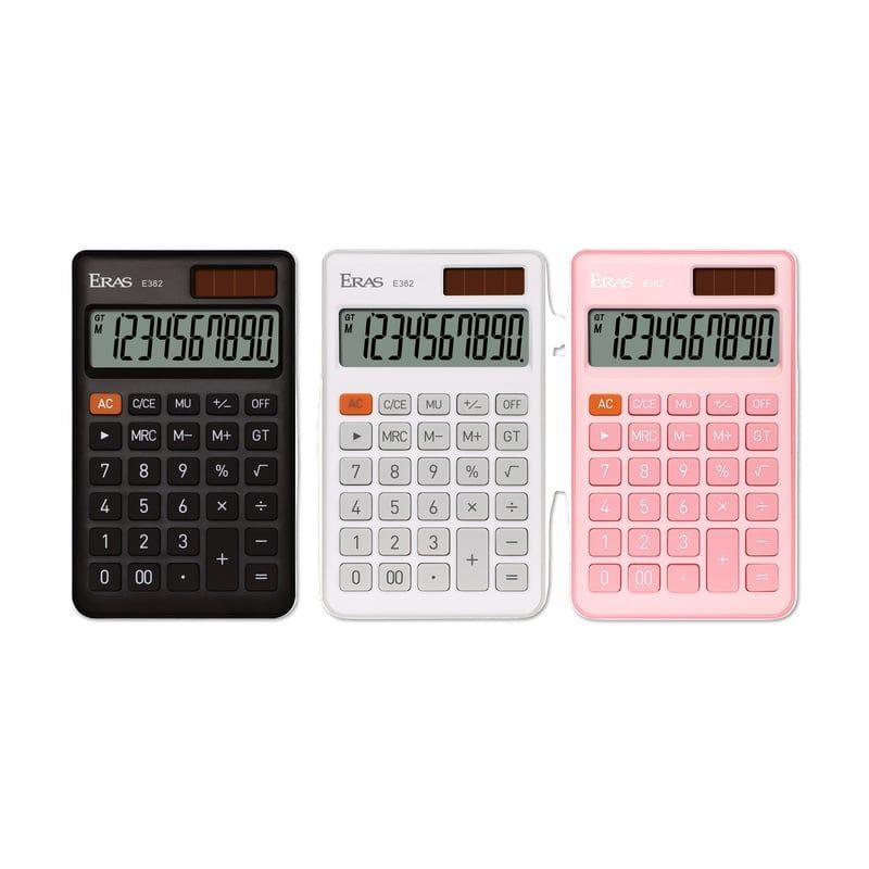 Máy tính Eras E382 mini, anh trai E381 ạ Hàng chất lượng cao giá tốt bảo hành 3 năm phù hợp cho các bạn học sinh và văn phòng, người bán hàng 3 màu: đen,hồng , trắng ghi màn hình hiển thị 10 số 2 dòng năng lượng các phím chức năng cơ bản%, nhớ, căn,,,, bảo hành 3 năm .