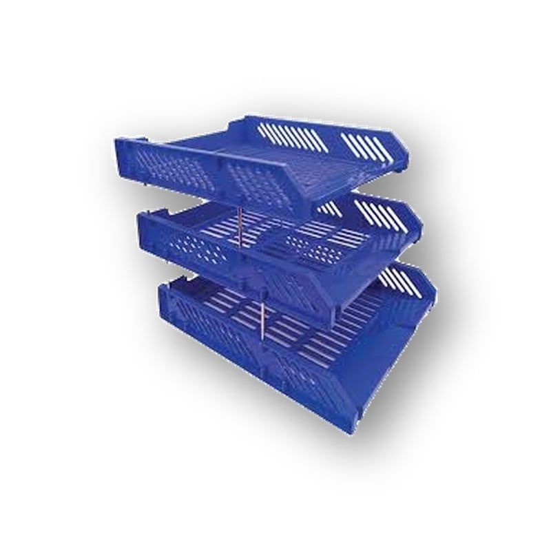 Khay tài liệu E831 màu xanh được ưa chuộng nhờ độ bền cao và thiết kế thực dụng: Kết cấu chắc chắn: Khay được lắp ghép từ các bộ phận rời bằng các trụ nhựa chịu lực tốt. Khi lắp hoàn thiện, khay rất vững chãi, không bị rung lắc ngay cả khi chứa đầy tài liệu ở tầng trên cùng. Thiết kế tầng bậc thang: Các khay đơn được xếp chồng lên nhau với độ vát nhẹ, giúp việc quan sát tên tài liệu và thao tác lấy/đặt giấy tờ ở tầng dưới không bị vướng bởi tầng trên. Kích thước tiêu chuẩn: Lòng khay rộng rãi, vừa vặn cho các khổ giấy A4, F4, bìa nút, bìa lỗ hoặc các loại kẹp file tài liệu phổ biến hiện nay. Bề mặt thông minh: Đáy khay thường có thiết kế các đường gân nổi hoặc lỗ thoáng khí để tránh tình trạng giấy tờ bị dính vào mặt khay do độ ẩm, đồng thời giảm trọng lượng tổng thể của sản phẩm. Màu sắc chuyên nghiệp: Màu xanh dương đậm mang lại cảm giác tin cậy, sạch sẽ và ít bám bẩn, rất phù hợp với môi trường công sở và bàn làm việc của giáo viên..