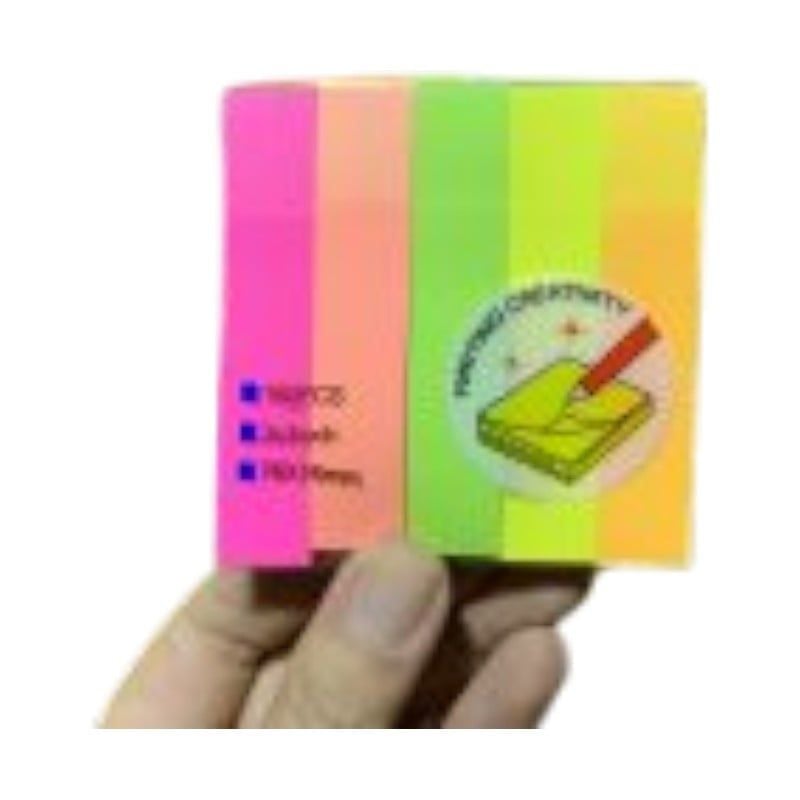 5 màu neon khác nhau trên cùng một xấp.Dành cho người dùng cần tổ chức thông tin cực kỳ chi tiết, đánh dấu nhiều dòng hoặc đoạn văn bản khác nhau trong một trang sách mà không làm che mất nội dung..
