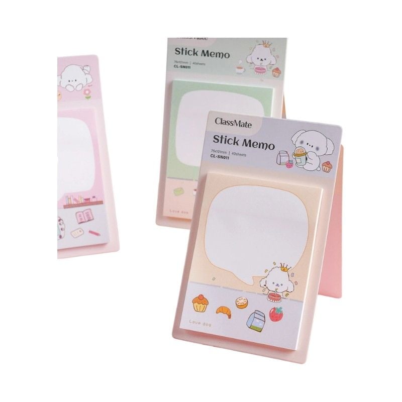 Sản phẩm có nhiều mẫu thiết kế họa tiết hình chú cún đáng yêu hoặc các hình Anime khác nhau, màu sắc tươi sáng (Hồng, Vàng, Xanh lá, Xanh dương), thường được giao ngẫu nhiên. Làm từ giấy tốt, có độ bám mực cao, không gây lem nhòe khi viết. Có keo dán chất lượng, dính lâu trên đa số các bề mặt và có thể bóc ra dễ dàng. Thích hợp dùng để ghi chú, nhắc nhở công việc, học tập, hoặc dùng để trang trí sổ tay, tập vở.