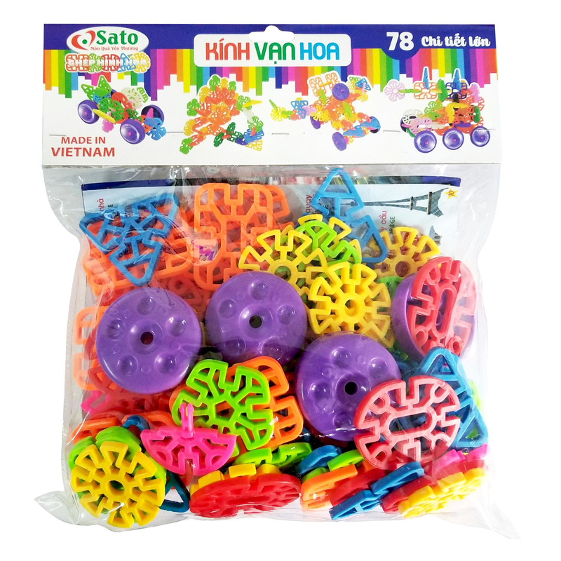 Khi bé bước sang 18 tháng tuổi, việc rèn luyện sự khéo léo, linh hoạt cho đôi tay là vô cùng cần thiết và đồ chơi ghép hình là lựa chọn đầu tiên của các mẹ. Tuy nhiên, mẹ cần chọn bộ ghép hình nào có kích thước lớn, dễ chơi, dễ sáng tạo để phù hợp với độ tuổi của bé. Hay những bé trên 3 tuổi cần một bộ đồ chơi vừa giải trí vừa giúp bé vận động trí não, hình thành khả năng sáng tạo, tính kiên trì nhưng lại đã nhàm chán với những bộ ghép hình khối chữ nhật quen thuộc. Với bộ sản phẩm “Ghép hình hoa Kính vạn hoa”_Dễ chơi, dễ sáng tạo của Sato sẽ là lựa chọn tuyệt vời cho các bé. Với những bông hoa nhiều hình dạng sẽ là trò chơi có sức hút vô tận đối với bé.Sản phẩm “Ghép hình hoa” thương hiệu Sato được sản xuất từ 100% nhựa nguyên sinh nhập khẩu, không hóa chất độc hại cho trẻ. Sản phẩm đã được kiểm định bởi Trung tâm Kỹ thuật Tiêu chuẩn Đo lường Chất lượng 1- Tổng cục Tiêu chuẩn Đo lường Chất lượng Việt Nam. + Với thiết kế thông minh, với nhiều hình dạng và màu sắc khác nhau giúp tăng khả năng nhận biết và khích thích trí tưởng tượng không gian đa chiều cho bé. Đặc biệt, các hình khối có kích thước lớn và chắc chắn hơn các loại đồ chơi xếp hình thông thường, giúp các bé nhỏ từ 18 tháng tuổi vẫn có thể thỏa sức sáng tạo một cách dễ dàng. .