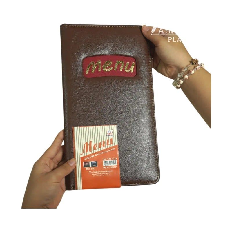 Chất liệu da Simili sang trọng: Bìa được bọc lớp da nhân tạo cao cấp, có khả năng chống thấm nước, chống bám bẩn và dễ dàng lau chùi bằng khăn ẩm. Màu sắc thường là các tông màu đậm như đen, nâu cà phê hoặc đỏ đô, tạo cảm giác lịch sự. Lá nhựa trong suốt (Pocket): Bên trong gồm 10 lá nhựa PP dày dặn, độ trong suốt cao, giúp hiển thị hình ảnh món ăn hoặc nội dung tài liệu một cách sắc nét nhất. Chất liệu nhựa này chống dính (non-copy-transfer), giúp bảo vệ nội dung in không bị lem hay dính vào mặt lá nhựa theo thời gian. Góc bìa bảo vệ: Một số phiên bản MN521 được bo góc kim loại (màu vàng hoặc bạc) giúp tăng tính thẩm mỹ và bảo vệ các góc bìa không bị bong tróc, trầy xước trong quá trình va chạm. Khả năng thay đổi nội dung: Thiết kế cho phép bạn dễ dàng thay đổi các tờ menu bên trong, cực kỳ linh hoạt khi nhà hàng cần cập nhật món mới hoặc thay đổi giá cả..