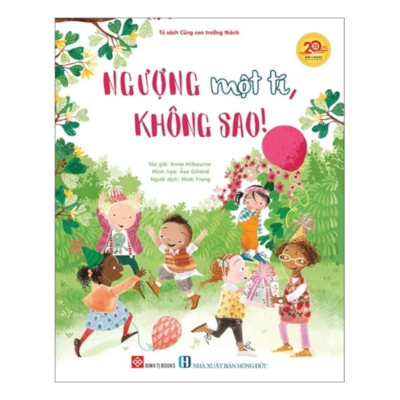 Ngượng Một Tí, Không Sao! Có bao giờ em cảm thấy lo lắng khi ở một mình trong phòng? Đó là nỗi sợ rất phổ biến ở các bạn nhỏ. Câu chuyện này khám phá nỗi lo ấy theo một cách nhẹ nhàng và dí dỏm. Qua lời kể của cô bé nhân vật chính, chúng ta thấy được những sợi dây kết nối vô hình nhưng vô cùng bền chặt giữa cô bé và bố mẹ, dù không ở chung một phòng. Tiếng bố hát vọng từ bếp, tiếng chuyện trò của cả nhà từ phòng khách... tất cả đều là lời khẳng định rằng em luôn được yêu thương và an toàn. Với những nét vẽ đầy biểu cảm và lời văn ấm áp, câu chuyện mang đến một cái kết ngọt ngào, xoa dịu nỗi sợ và giúp em nhận ra rằng: một mình đôi lúc cũng rất ổn, vì tình yêu thương của gia đình luôn ở ngay bên cạnh. Một cuốn sách dịu dàng, giúp em cảm thấy an tâm, an toàn và được yêu thương, ngay cả khi không có bố mẹ kề bên..
