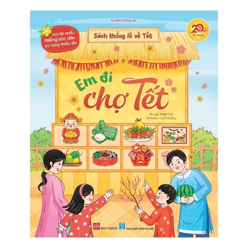 Sách Khổng Lồ Về Tết - Em Đi Chợ Tết Chơi Tết thật vui với Sách khổng lồ về Tết - Em đi chợ Tết! Bé sẽ được thỏa sức sáng tạo cùng các miếng bóc dán sử dụng nhiều lần để trang trí chợ xuân và lựa chọn trang phục cho các nhân vật. Một cuốn sách tương tác đầy màu sắc, khơi gợi trí tưởng tượng và niềm háo hức đón Tết.